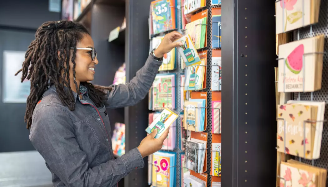 Vlak voor het openen van de winkel heb je alle kranten in het schap gelegd. Je ziet een vaste klant aankomen die dagelijks een krantje komt halen. Je reikt hem de krant aan en helpt hem bij het uitzoeken van een verjaardagskaart voor zijn kleindochter. Fijne verjaardag alvast!