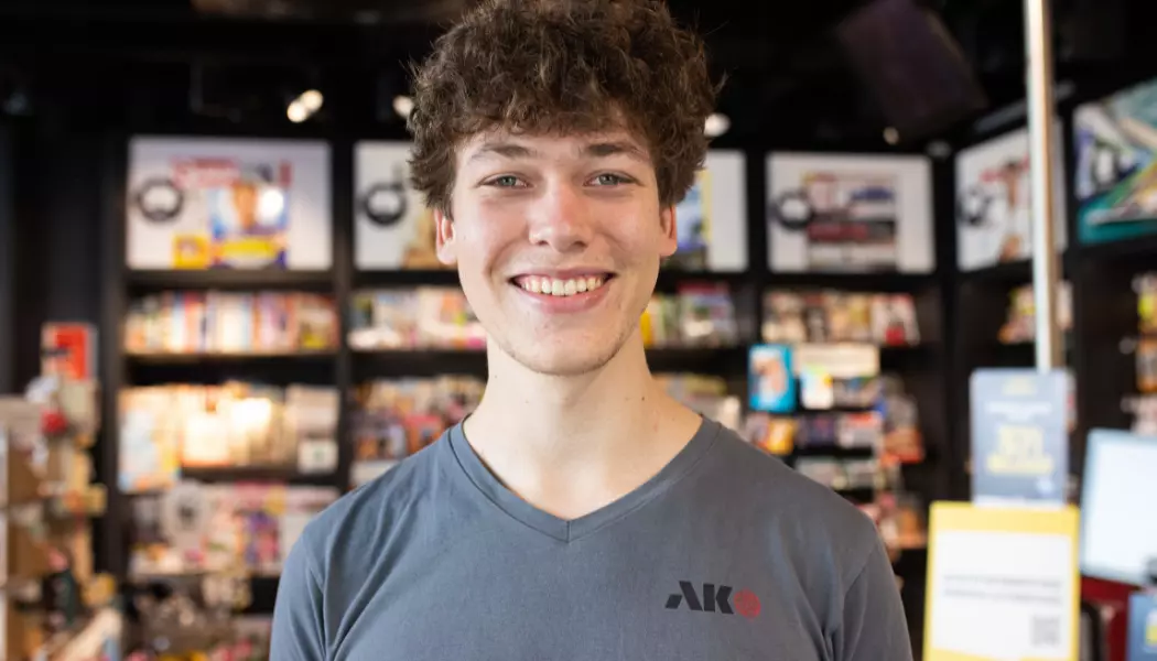 David (21) is student psychologie en werkt sinds kort als oproepkracht bij de vestiging van AKO op het centraal station van Utrecht. Op zoek naar een leuke bijbaan, wilde David graag wat meer vastigheid. Dat heeft hij bij AKO gevonden, in een job waar hij met veel plezier werkt.